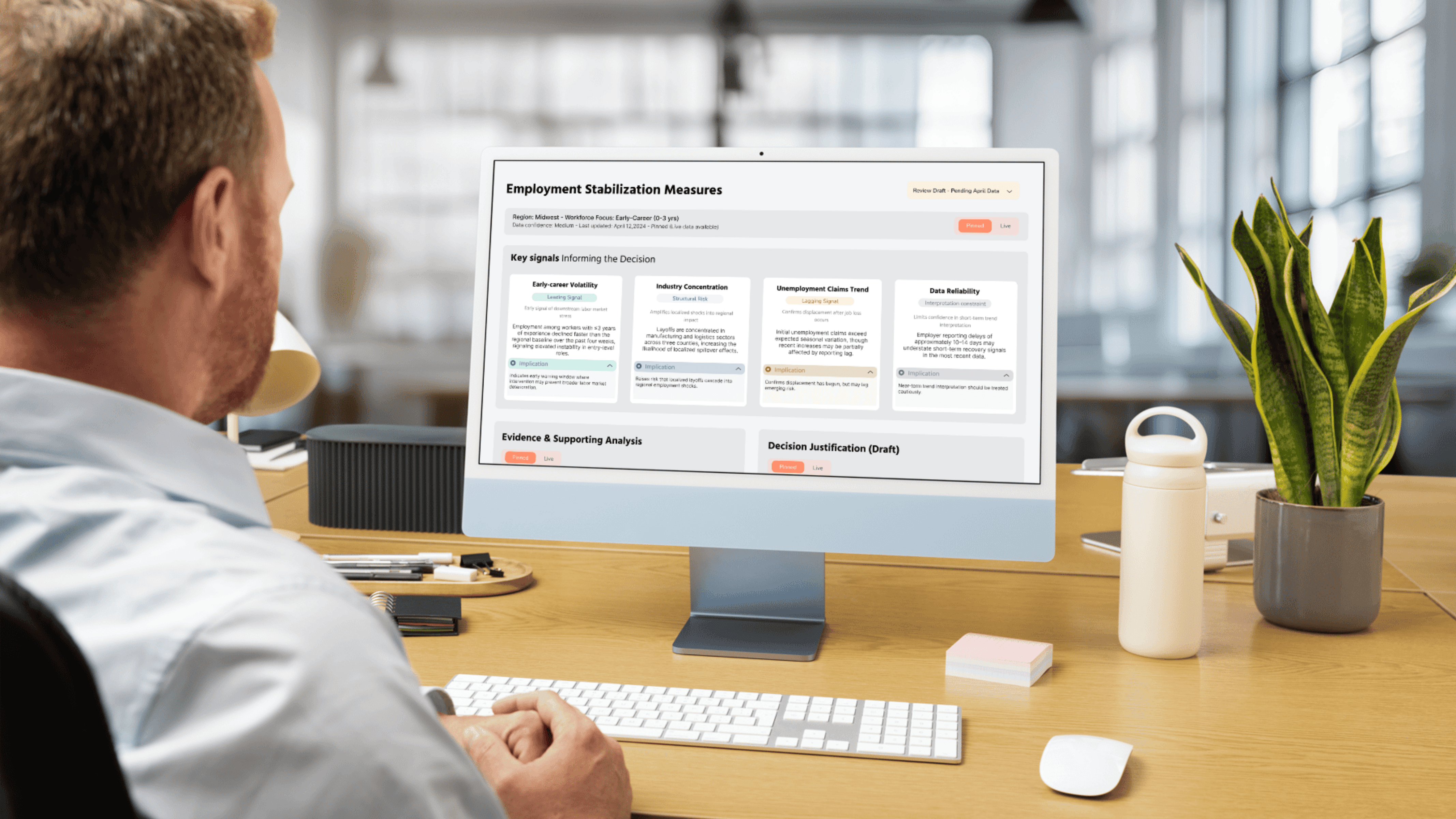 A policy-focused dashboard that integrates multiple labor data sources into a structured interface for evidence-based employment intervention decisions.