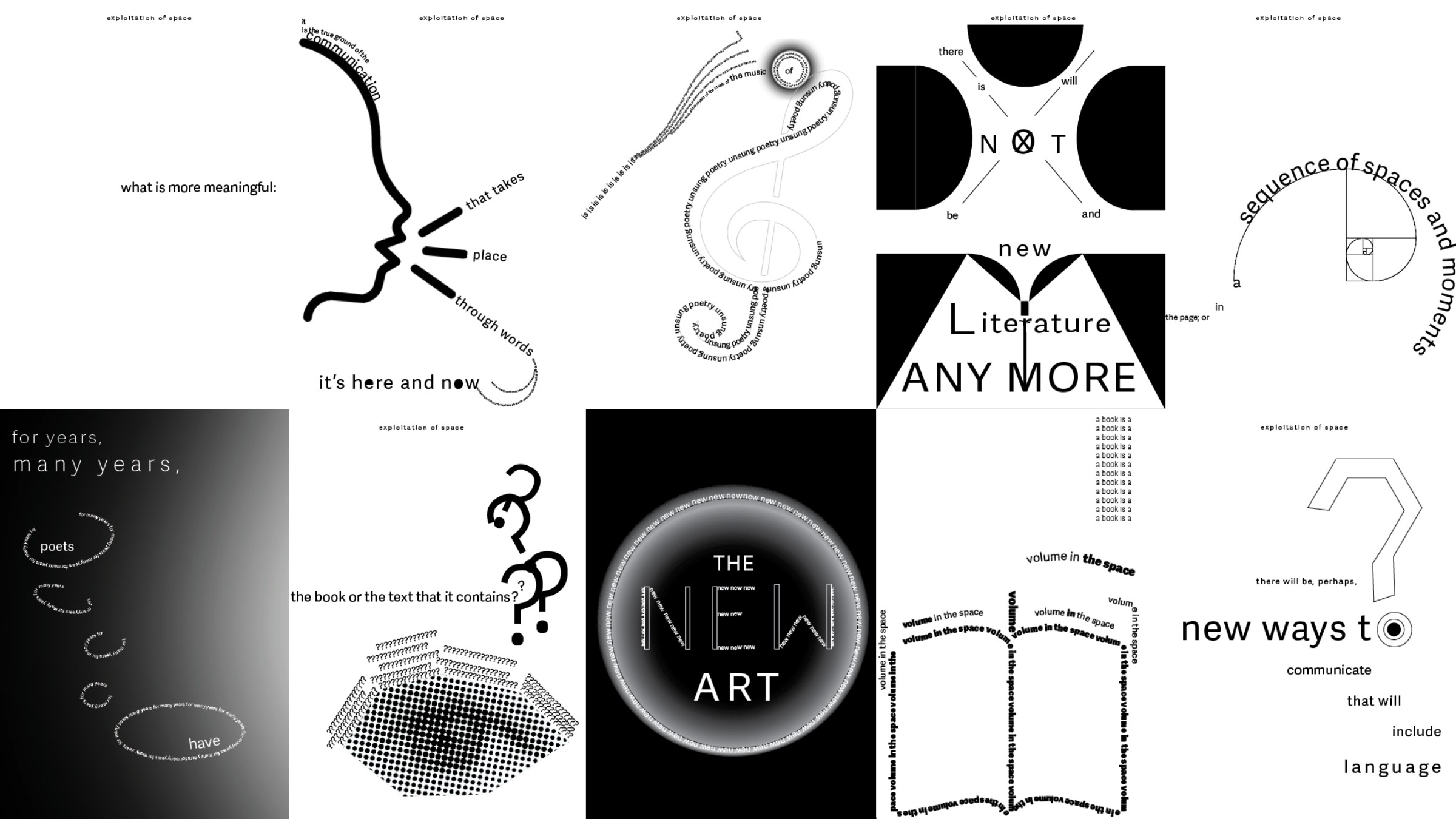 These pieces started as a way to question how language lives on a page. Some explore silence and space, while others feel more crowded and chaotic. The designs are influenced by concrete poetry and the physical experience of reading. Text stretches, loops, and builds to reflect internal states like tension, stillness, or sensory overload. The goal was to let the form of each word carry just as much weight as its meaning.